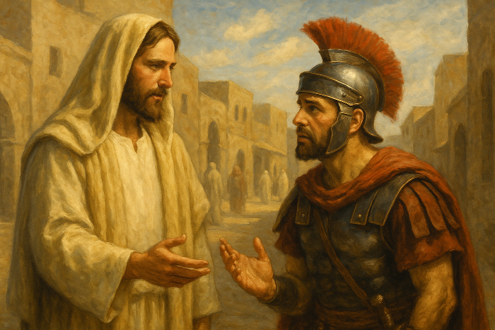 7 예수님께서 "내가 가서 그를 고쳐 주마." 하시자, 8 백인대장이 대답하였다 "주님, 저는 주님을 제 지붕 아래로 모실 자격이 없습니다. 그저 한 말씀만 해 주십시오. 그러면 제 종이 나을 것입니다. 9 사실 저는 상관 밑에 있는 사람입니다만 제 밑으로도 군사들이 있어서, 이 사람에게 가라 하면 가고 저 사람에게 오라 하면 옵니다. 또 제 노예더러 이것을 하라 하면 합니다."
